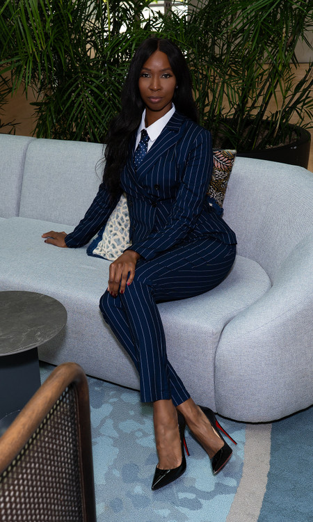 The Blair Pinstripe Pants are your go-to for sleek, confident style with serious presence. These pants deliver a polished look that's ideal for the office, meetings, or professional event. With a flattering fit and timeless stripes, they bring CEO and boardroom vibes with every step. Pair with the matching Blake Blazer to complete the look.